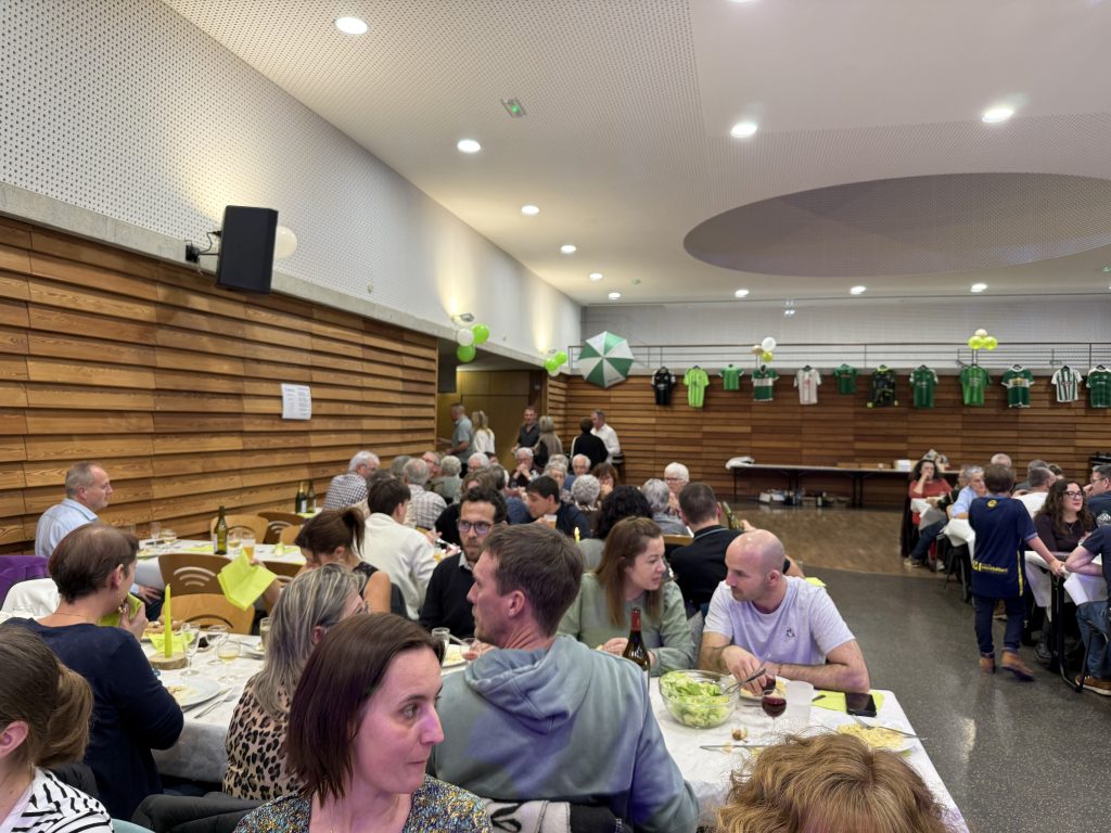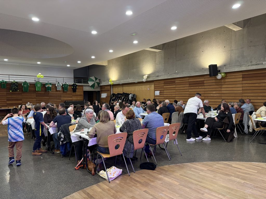 Les conversations animées autour des tables, les éclats de rire et les souvenirs sportifs ont rythmé le début de soirée, avant de laisser place à la musique qui a rapidement rempli la piste de danse. L’animation musicale a su créer une atmosphère dynamique et familiale, permettant à chacun de prolonger la fête tard dans la soirée. La tombola, autre temps fort de l’événement, a également rencontré un vif succès, suscitant enthousiasme et suspense au moment des tirages.